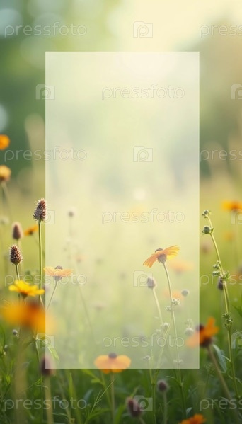 Красивый луг с разнообразными цветущими полевыми цветами, демонстрирующими разные цвета и формы. Атмосфера яркая и безмятежная, располагающая к спокойствию. Скопируйте место для текста. Генеративный ИИ