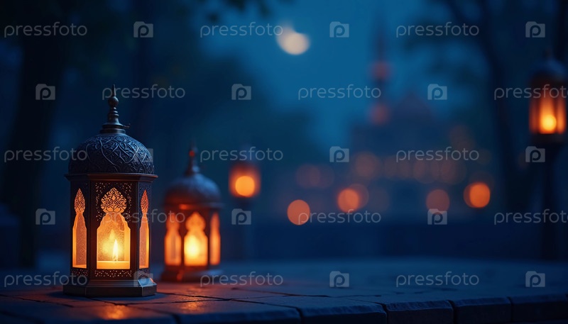 Мягкий свет красиво оформленного арабского фонаря и горящей свечи создает теплую, уютную атмосферу, идеально подходящую для ночных празднеств Рамадана среди мусульман. Генеративный ИИ