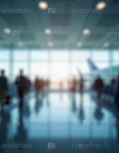 Толпы путешественников перемещаются по просторному терминалу аэропорта, занимаясь различными делами и готовясь к предстоящим рейсам в утреннем или вечернем свете. Расфокусированное боке. Генеративный ИИ