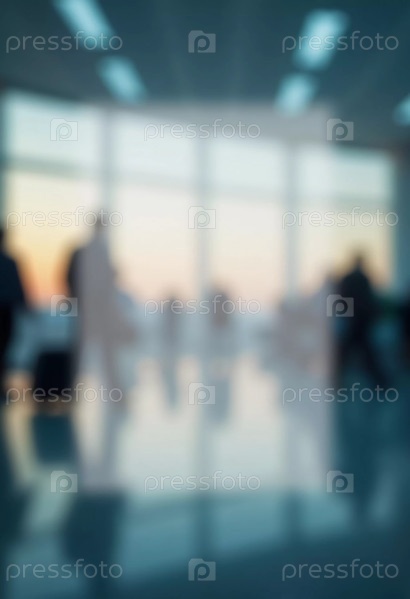 Толпы путешественников перемещаются по просторному терминалу аэропорта, занимаясь различными делами и готовясь к предстоящим рейсам в утреннем или вечернем свете. Расфокусированное боке. Генеративный ИИ