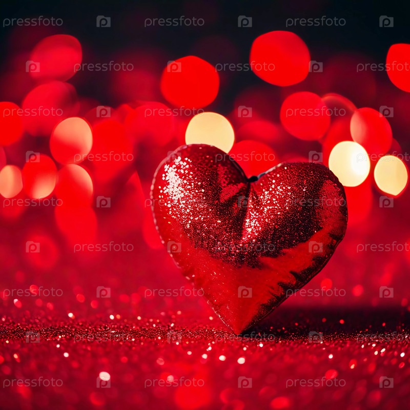 Ярко-красный блеск покрывает фон, украшенный разбросанными сердцами разных размеров, создавая праздничную и романтическую атмосферу, идеальную для особых случаев. Генеративный ИИ