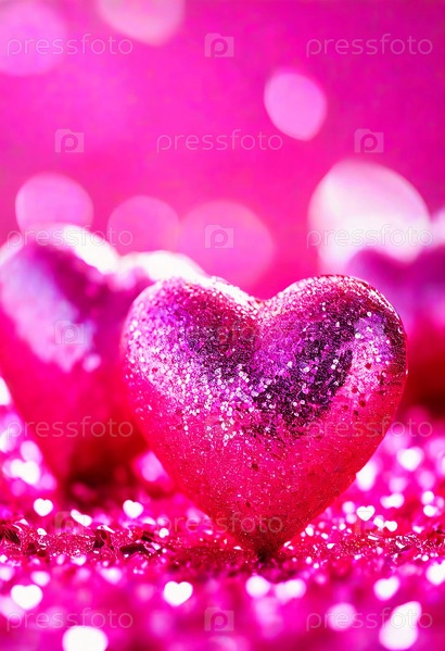 Блестящие розовые сердечки разбросаны по яркому фону, наполненному сверкающими огнями, создавая романтическое настроение для празднеств и торжеств в честь Дня святого Валентина. Генеративный ИИ