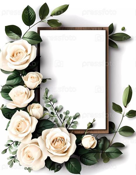 Нежные белые розы и мягкие бутоны создают элегантную рамку вокруг пустой открытки, идеально подходящую для личных сообщений или декоративных целей на любом мероприятии. С днем рождения, днем матери, днем святого Валентина. Генеративный ИИ