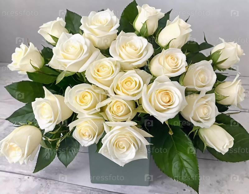 Потрясающая композиция из чистых белых роз грациозно цветет в шикарной вазе, воплощая красоту и элегантность, идеально подходит для свадеб, юбилеев или душевных подарков Генеративный искусственный интеллект