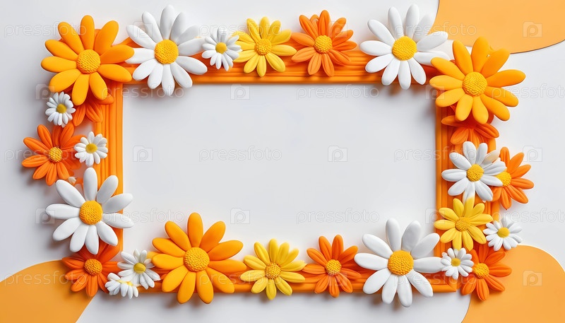 Обрамленное яркими ромашками в веселых тонах, пустое пространство ждет креативности. Теплый фон, наполненный желтым и оранжевым, приглашает к радостному самовыражению и вдохновению