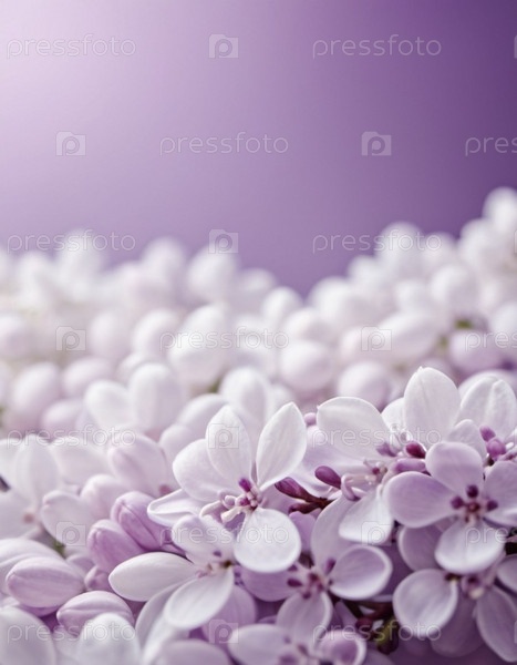Снимок нежных сиреневых цветов, лепестки мягкие, пастельно-фиолетовые и белые, на размытом фоне. Изображение запечатлело сложные детали цветков, демонстрируя их нежную красоту. AI