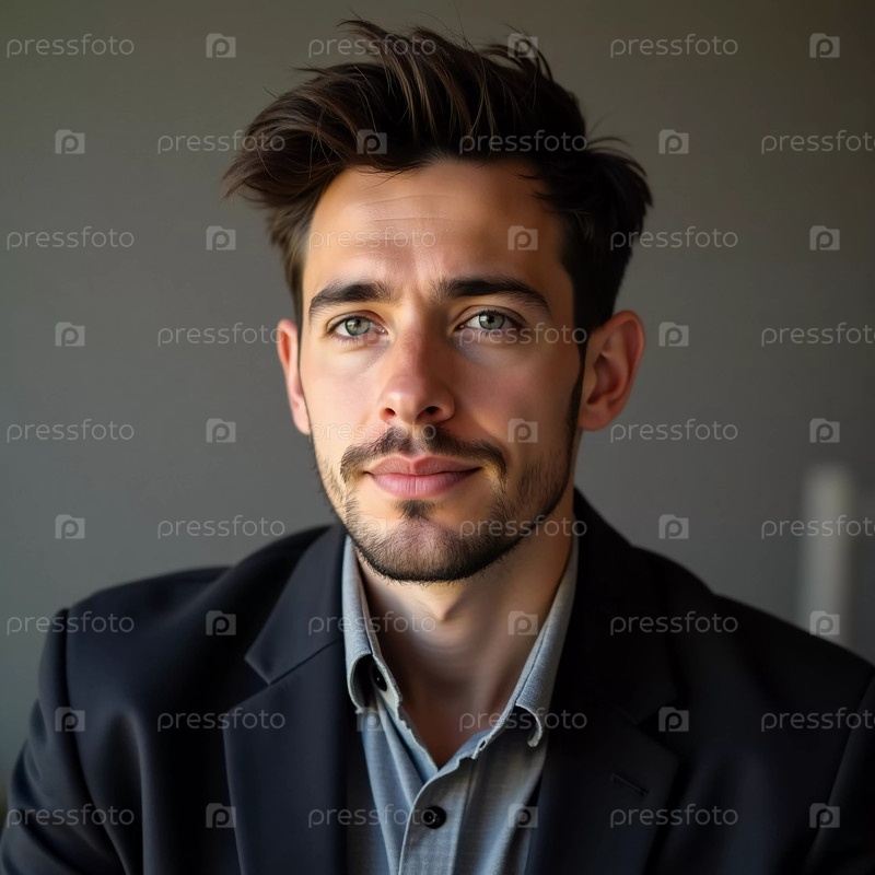 Молодой мужчина, житель Израиля, демонстрирует задумчивое выражение лица, одетый в строгий блейзер и рубашку. Теплое внутреннее освещение подчеркивает его уверенное присутствие, идеально подходящее для светской встречи