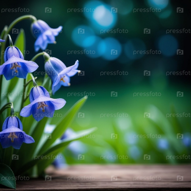 Цветы колокольчика цветут в пышном зеленом лесу. Светло-голубые лепестки цветов создают яркий контраст на фоне богатой листвы. Красивая природная сцена. Нечеткий фон. Глубина и спокойствие. AI