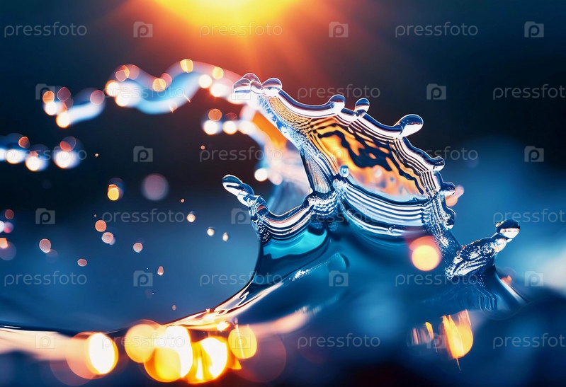 Солнце встает над океаном, отбрасывая теплые тона на воду. Волны мягко накатывают, создавая пузыри, которые сверкают в утреннем свете, а облака раскрашивают небо яркими цветами. Генеративный ИИ