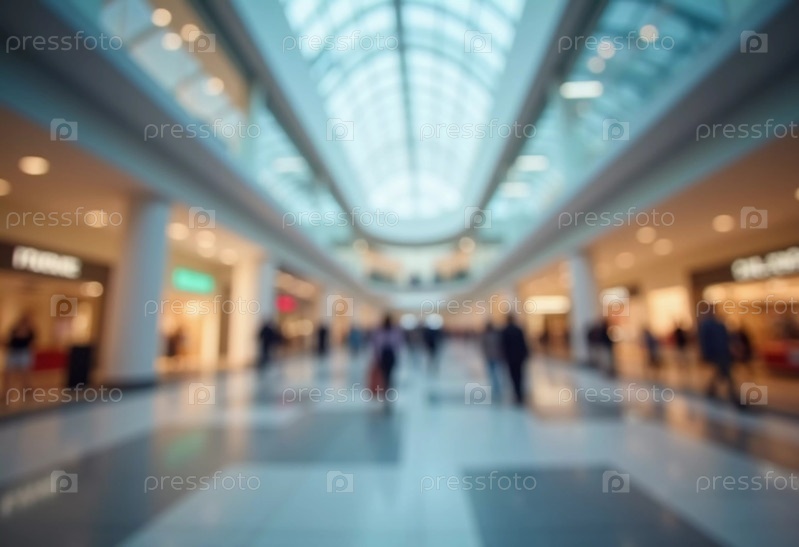 Оживленный торговый центр имеет просторный, светлый коридор, заполненный покупателями. Витрины магазинов выстроились по обе стороны, создавая живую и привлекательную среду для всех посетителей. Расфокусированный вид. ИИ