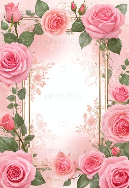 Превосходно выполненная открытка с розовыми розами, обрамляющими пустое место для личных сообщений, идеально подходит для праздников и душевного общения