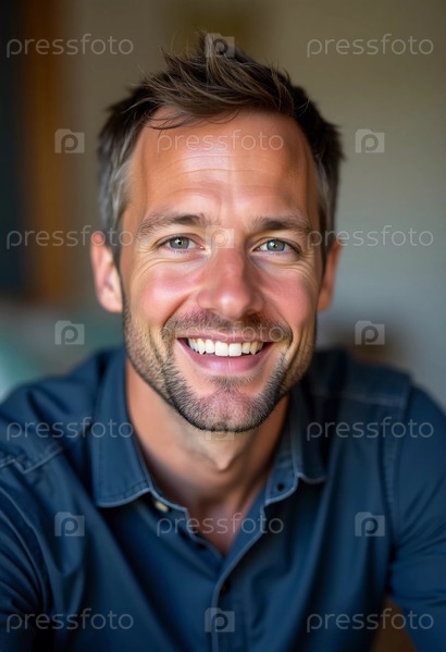 Яркий солнечный свет освещает жизнерадостного шведа со светлыми волосами, излучающего счастье в гостеприимном помещении, воплощающем чувство радости и комфорта Генеративный ИИ
