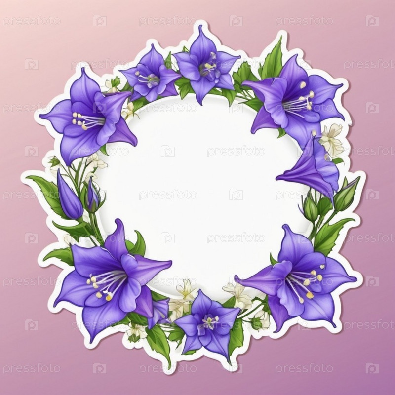 Чистый лист бумаги, окруженный рамкой из фиолетовых или синих колокольчиков. Цветы, расположенные вокруг бумаги, создают естественную красивую границу. Фон или шаблон для различных целей, пространство для копирования