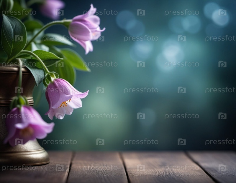 Фиолетово-розовые цветы колокольчика цветут в пышном лесу. Лепестки цветов создают яркий контраст на фоне богатой листвы. Красивая природная сцена. Нечеткий фон. Глубина и спокойствие. AI
