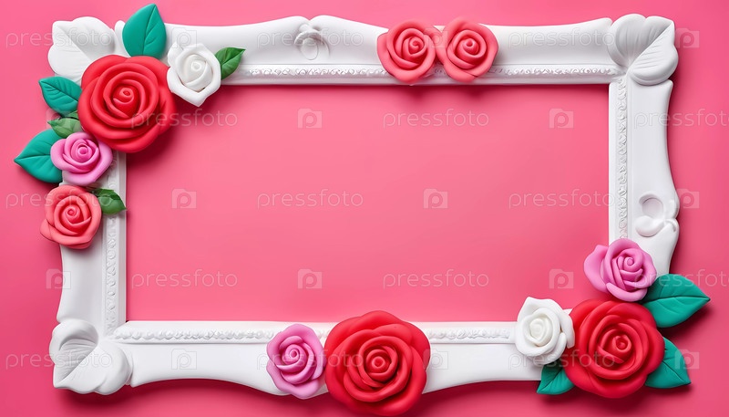 Декоративная рамка, украшенная красными и белыми розами на розовом фоне, обеспечивает очаровательный фон для искусства или сообщений. Идеально подходит для праздников и особых случаев. Генеративный ИИ