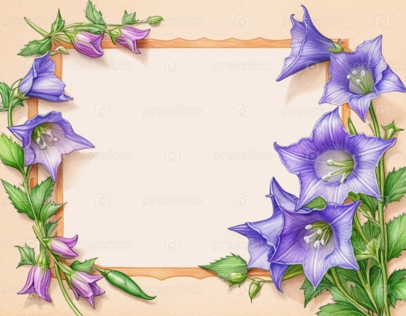 Чистый лист бумаги, окруженный рамкой из фиолетовых или синих колокольчиков. Цветы, расположенные вокруг бумаги, создают естественную красивую границу. Фон или шаблон для различных целей, пространство для копирования