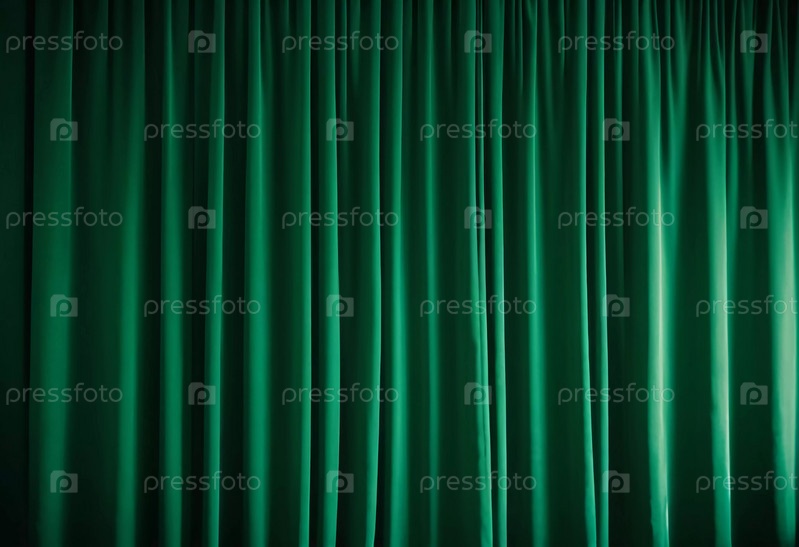 Штора с мягкими плавными струящимися складками. Глубокий зеленый цвет и роскошная фактура создают драматичную и элегантную атмосферу. Декор и дизайн интерьера. Дорогая штора из богатой ткани. AI
