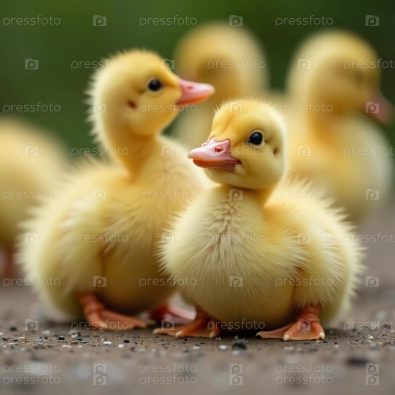 Милые желтые утята стоят вместе, нежный солнечный свет подчеркивает их пушистые перья. Милые желтые утята собрались вместе на мягкой земле в естественной обстановке на открытом воздухе. Генеративный ИИ