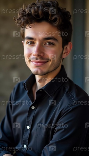 В очаровательной обстановке помещения молодой израильтянин сияет теплой улыбкой, воплощая суть счастья. ИИ