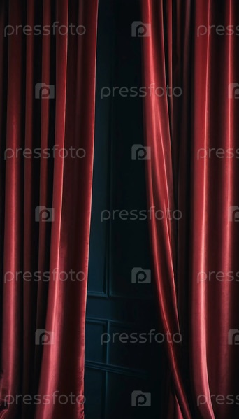 Роскошные струящиеся шелковые шторы изящно висят в мягко освещенной комнате, создавая глубокие тени и уютную атмосферу, когда сквозь ткань проникают золотистые оттенки заката
