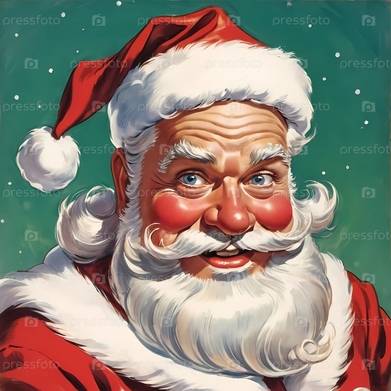 Классический рождественский Санта с радостным выражением лица и культовым красным костюмом на праздничном фоне, передающий дух рождественского веселья и праздников. Генеративный ИИ