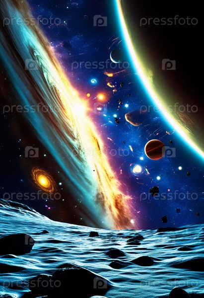 Вселенная космос пространство и время. Космические объекты планеты звезды свечения кометы туманности спутники и метеориты. Гравитационно связанная система межзвездного газа, пыли и темной материи, галактики. ИИ