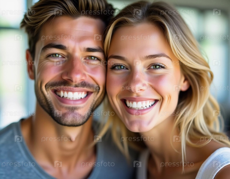Молодая пара излучает радость, когда они тепло обнимаются, их улыбки сияют под мягким солнечным светом. Этот нежный момент передает суть любви и счастья в их глазах Генеративный ИИ