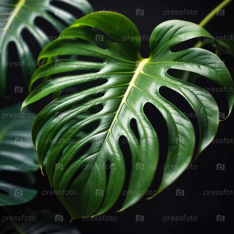 Яркие листья монстеры демонстрируют свою уникальную форму и насыщенный зеленый цвет, добавляя естественную красоту и спокойствие в помещение в тихий полдень