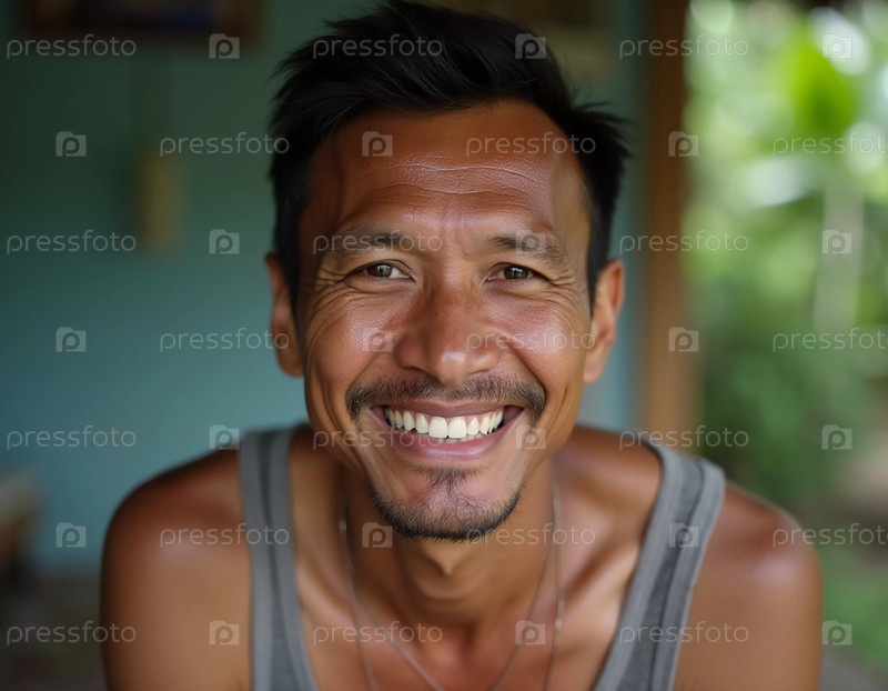 Жизнерадостный мужчина, проживающий в Таиланде, широко улыбается, что отражает его дружелюбную натуру. Генеративный ИИ