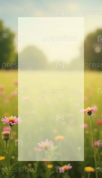 Красивый луг с разнообразными цветущими полевыми цветами, демонстрирующими разные цвета и формы. Атмосфера яркая и безмятежная, располагающая к спокойствию. Скопируйте место для текста. Генеративный ИИ