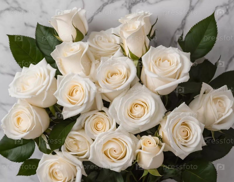 Нежные белые розы собраны в потрясающий букет, их мягкие лепестки и пышная зелень создают романтическую атмосферу, идеально подходящую для праздников и значимых подарков. Генеративный искусственный интеллект