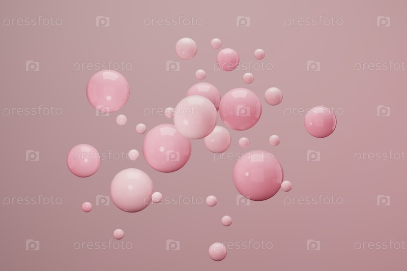 Абстрактные розовые сферы, монохромный цвет, 3d рендеринг иллюстрации