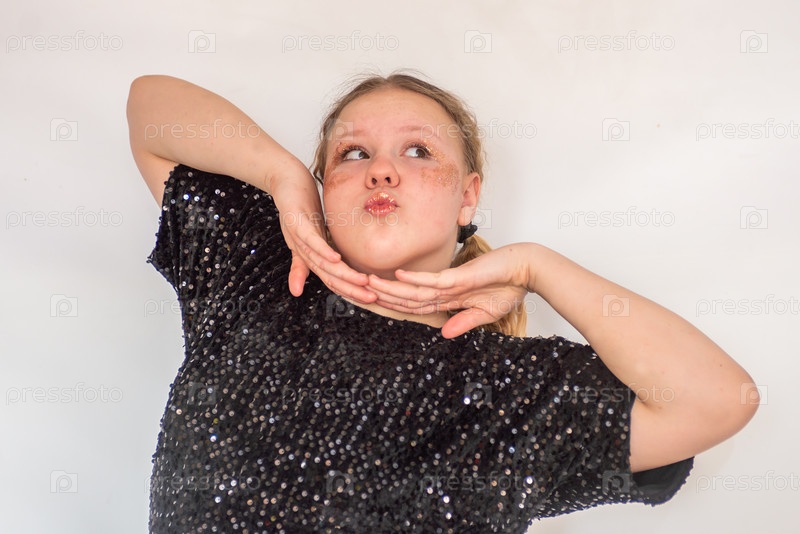 Красивая девушка-модель в модном черном платье. Подросток. Портрет. 2025