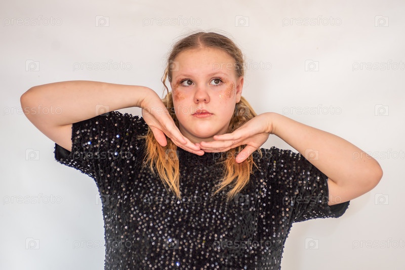 Красивая девушка-модель в модном черном платье. Подросток. Портрет. 2025