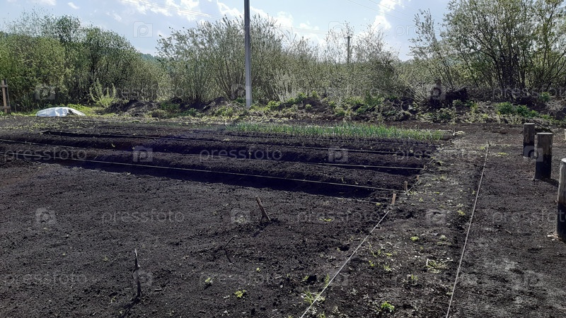 Подготовка и посадка общественного сада в раннем весеннем солнечном свете