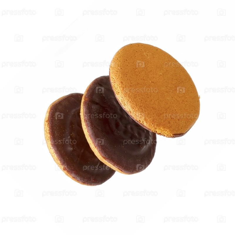 Круглое шоколадное печенье, изолированное на белом фоне. Печенье бисквитное