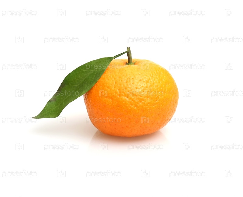 Мандарин со свежими зелеными веточками, изолированные на белом фоне