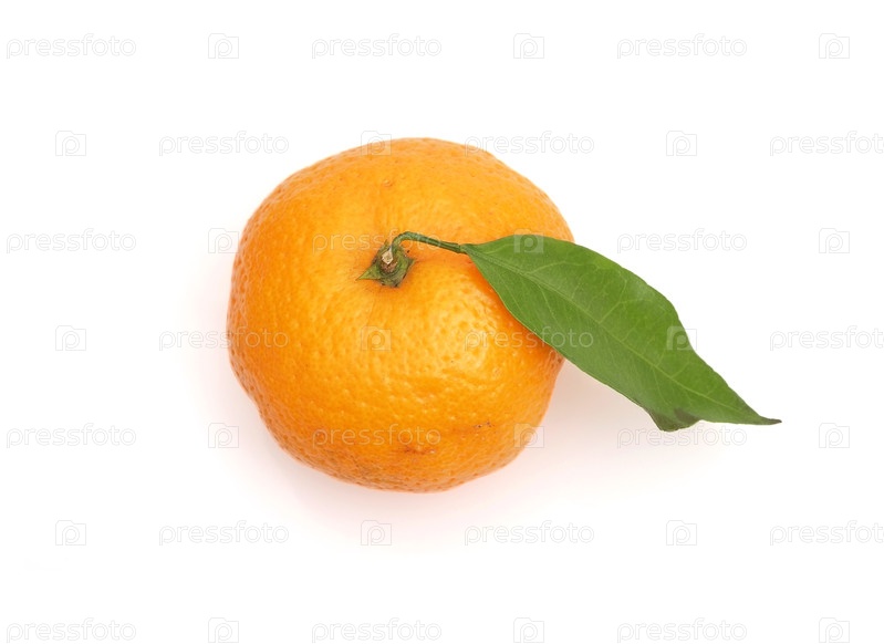 Мандарин со свежими зелеными веточками, изолированные на белом фоне