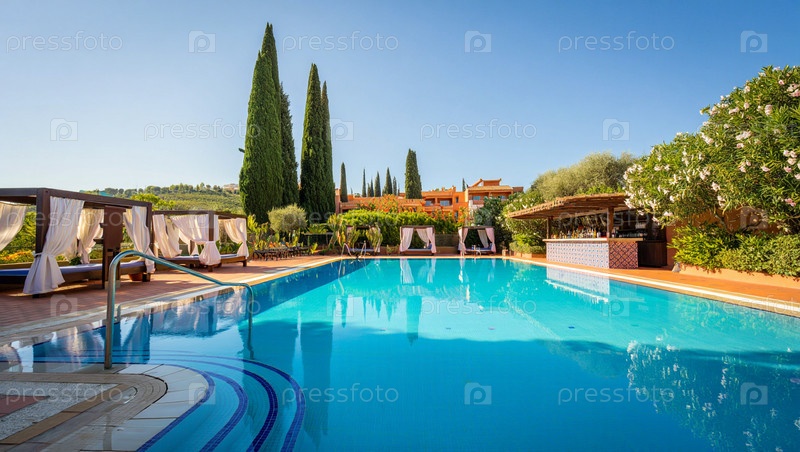 Отель на юге с открытым бассейном — создано с помощью ИИ