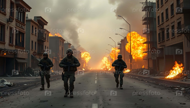 Солдат в заброшенном городе Генеративный ИИ