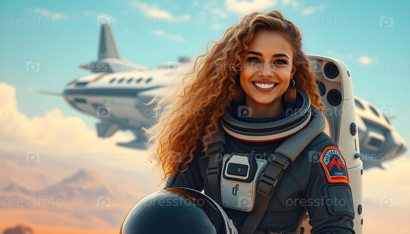 Молодая красивая женщина в костюме астронавта Генеративный искусственный интеллект