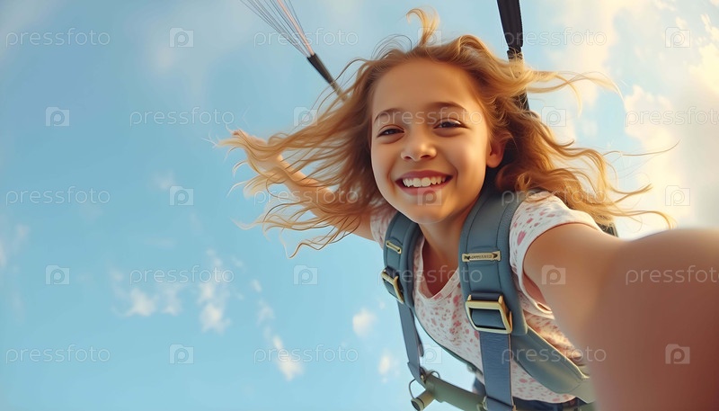 Летающая девушка делает селфи с помощью искусственного интеллекта