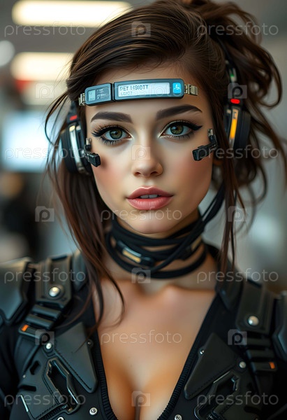 Молодая женщина в стиле киборга. Генеративный искусственный интеллект