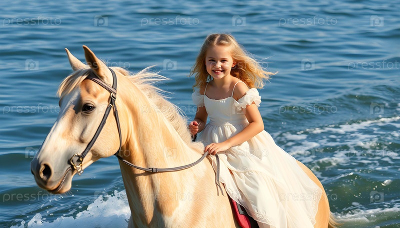 Молодая женщина верхом на лошади ИИ