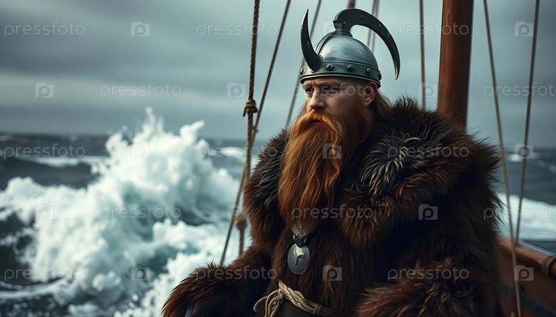 Бородатый викинг на палубе Drakkar Генеративный искусственный интеллект