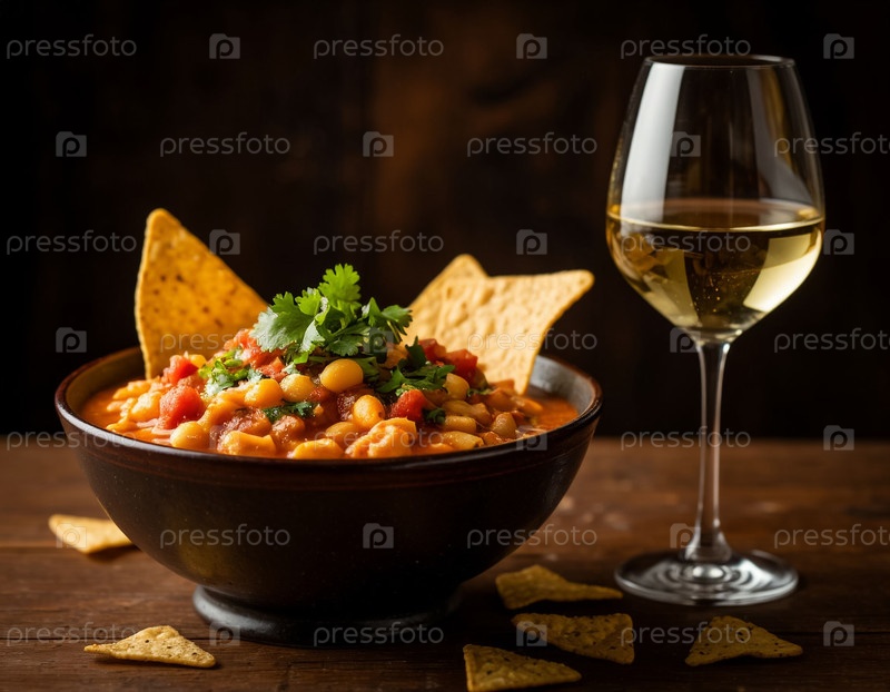Суп госпачо и бокал сухого белого вина, созданные искусственным интеллектом