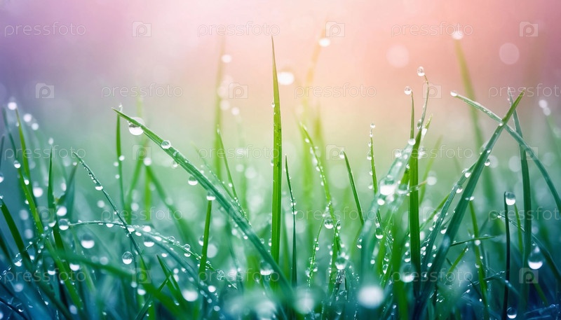Трава с каплями росы крупным планом, созданная искусственным интеллектом