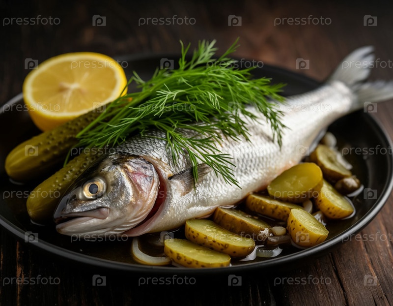 Маринованная сельдь с корнишонами и луком, созданная с помощью искусственного интеллекта
