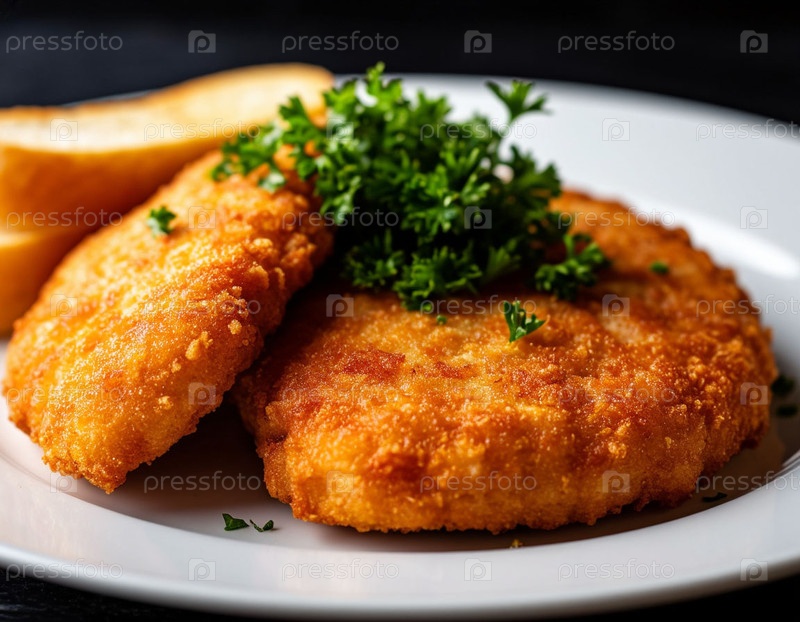 Шницель на тарелке, созданный искусственным интеллектом