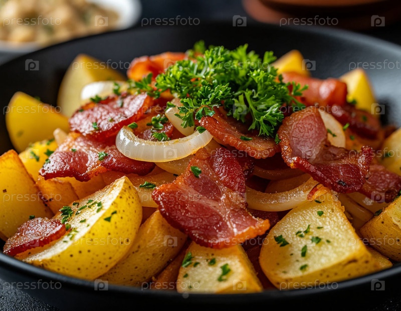 Жареный картофель с беконом и луком, созданный искусственным интеллектом